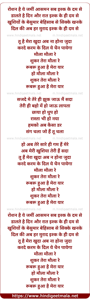 Lyrics of Maulaa Maulaa Re Sukar Tera Maulaa Re - मौला मौला रे शुक्र तेरा मौला रे