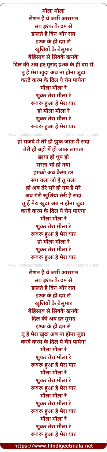 Poetic Translation - Lyrics of Maula Maula (Remix) - मौला मौला