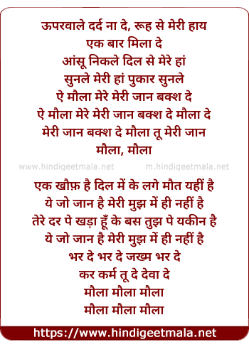 Lyrics of Maula, Meri Jaan Bhaksh De - मौला, मेरी जान बक्श दे