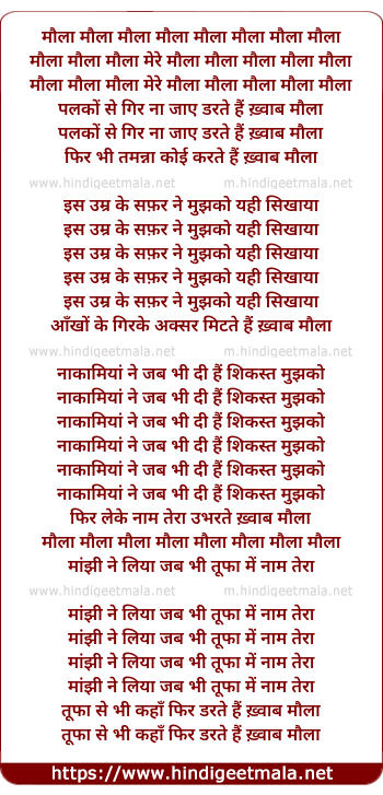 Lyrics of Maulaa Maulaa - मौला मौला मौला मौला