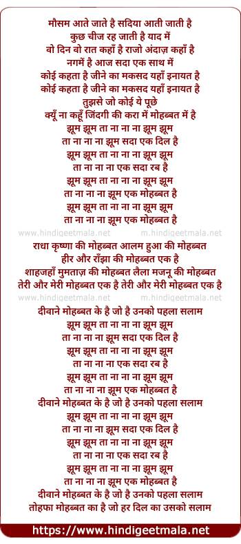 Lyrics of Mausam Aate Jate Hai - मौसम आते जाते है सदिया आती जाती है