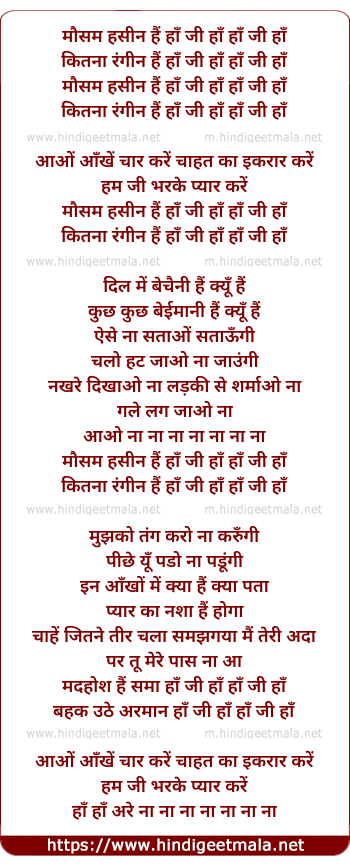 Lyrics of Mausam Haseen Hai - मौसम हसीन हैं