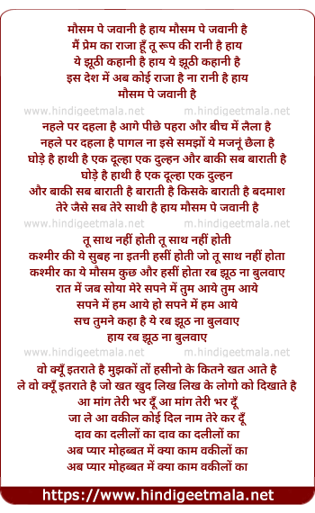 Lyrics of Mausam Pe Jawani Hai - मौसम पे जवानी है