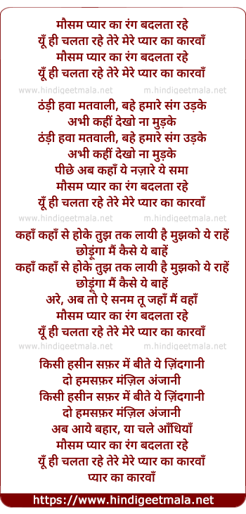 Mausam Pyar Ka Rang Badlta Rahe Yu Hi Chalta - मौसम प्यार का रंग बदलता रहे