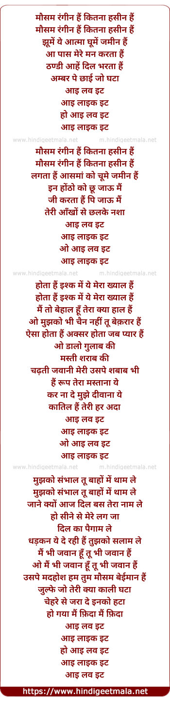 Lyrics of Mausam Rangeen Hai - मौसम रंगीन हैं