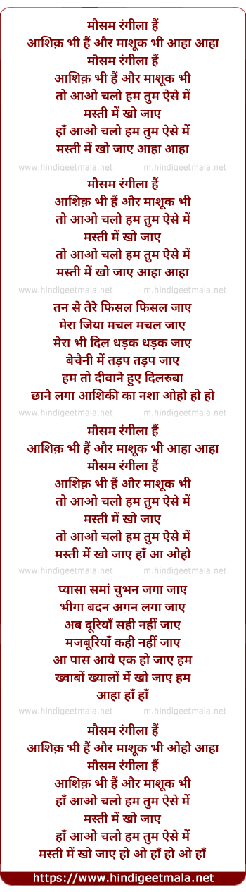 Lyrics of Mausam Rangila Hai Aashiq Bhi Hai - मौसम रंगीला हैं आशिक़ भी हैं