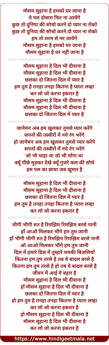 Lyrics of Mausam Suhana Hai - मौसम सुहाना है