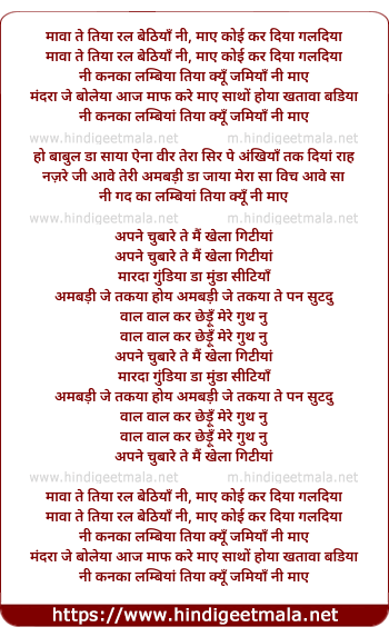 Lyrics of Mava Te Tiya Ral Bethhiya Nee - मावा ते तिया रल बेठियाँ नी