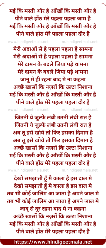 Lyrics of May Ki Masti Aur Hai - मई की मस्ती और है