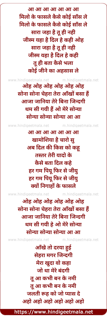 Lyrics of Meelo Ke Fasle (Unplugged) - मिलो के फासले