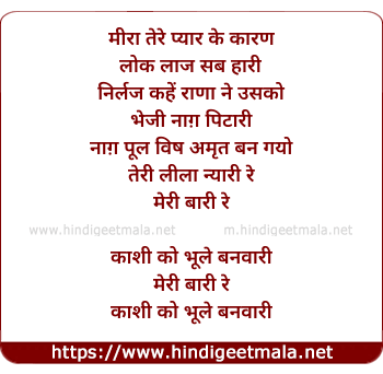 Lyrics of Meera Tere Pyar Ka Kaaran - मीरा तेरे प्यार के कारण