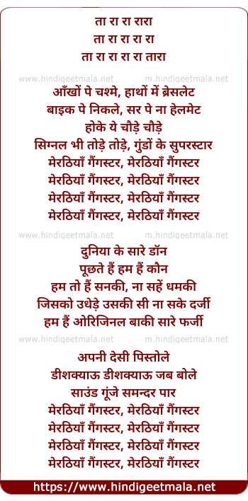 Lyrics of Meeruthiya Gangsters (Title Song) - ता रा रा रारा