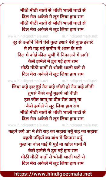 Lyrics of Meethi Meethi Baaton Se, Bholi Bhaali Ghaaton Se - मीठी मीठी बातों से भोली भाली घाटो से