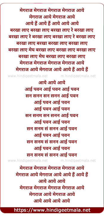 Lyrics of Meghraj Aaye Barkha Laye - मेगराज मेगराज मेगराज मेगराज आये