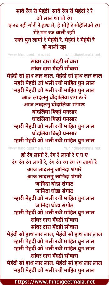 Lyrics of Mehandi - मेहंदी