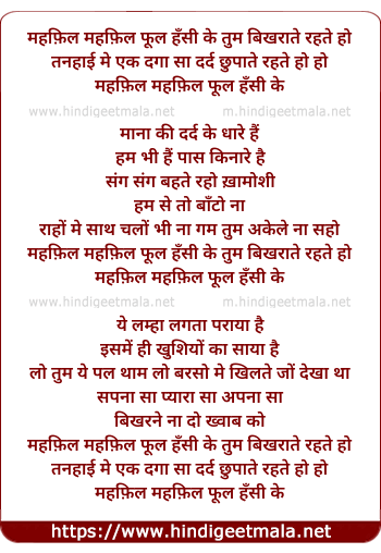 Lyrics of Mehfil Mehfil Phool Hasi Ke - महफ़िल महफ़िल फूल हँसी के