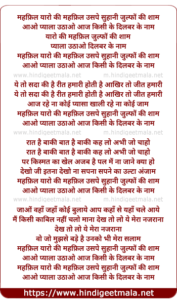 Lyrics of Mehfil Yaro Ki Mehfil - महफ़िल यारो की महफ़िल