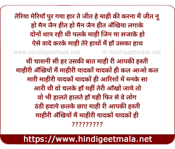mahiri ankhiya main mahiriyadko yadko hi