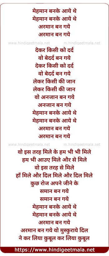 Lyrics of Mehman Ban Ke Aaye The - मेहमान बनके आये थे