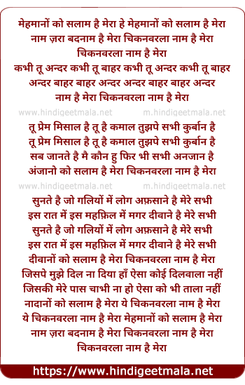 ye chikanwarla naam hai mera mehmano ko salam hai mera