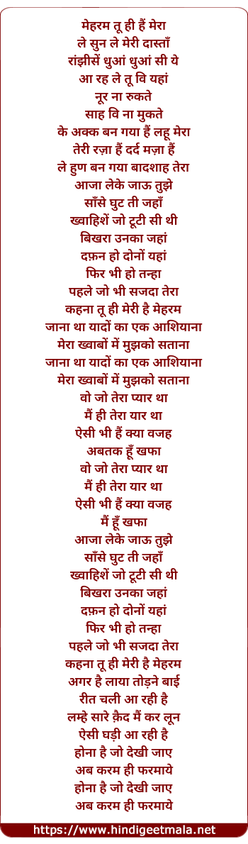 Lyrics of Mehram Tu Hi Hai Mera - मेहरम तू ही है मेरा