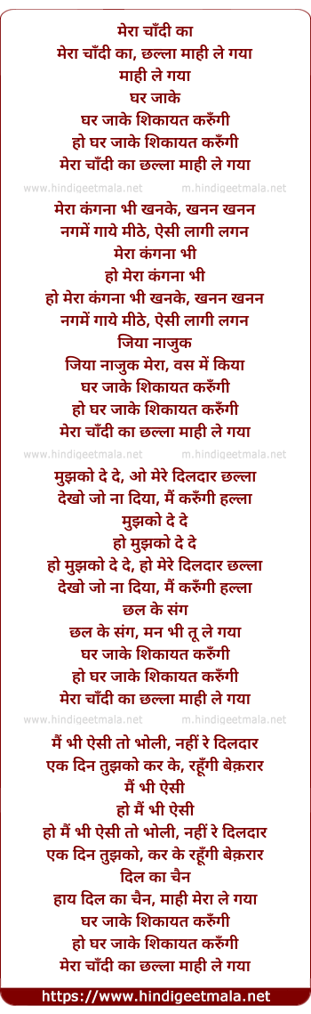 mera chandi ka, chhalla mahi le gaya