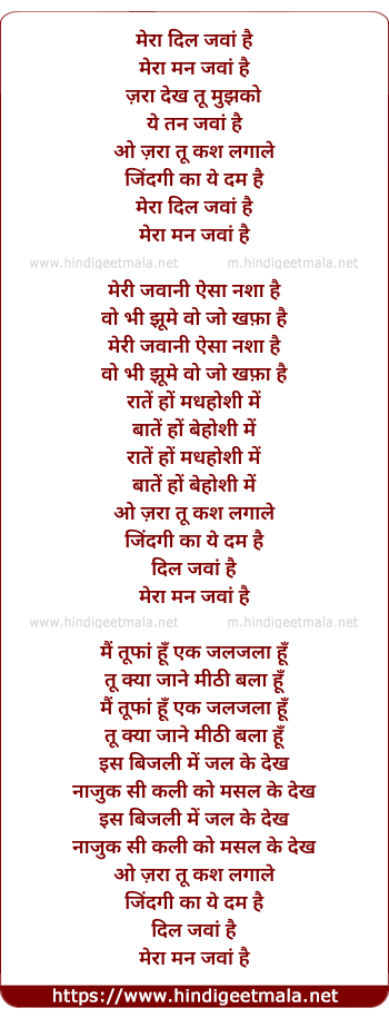Lyrics of Mera Dil Jawaan Hai - मेरा दिल जवां है
