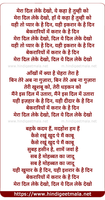 Lyrics of Mera Dil Leke Dekkho - मेरा दिल लेके देखो