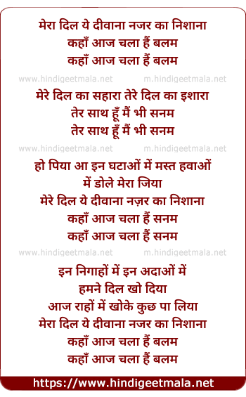 Lyrics of Mera Dil Ye Deewana - मेरा दिल ये दीवाना