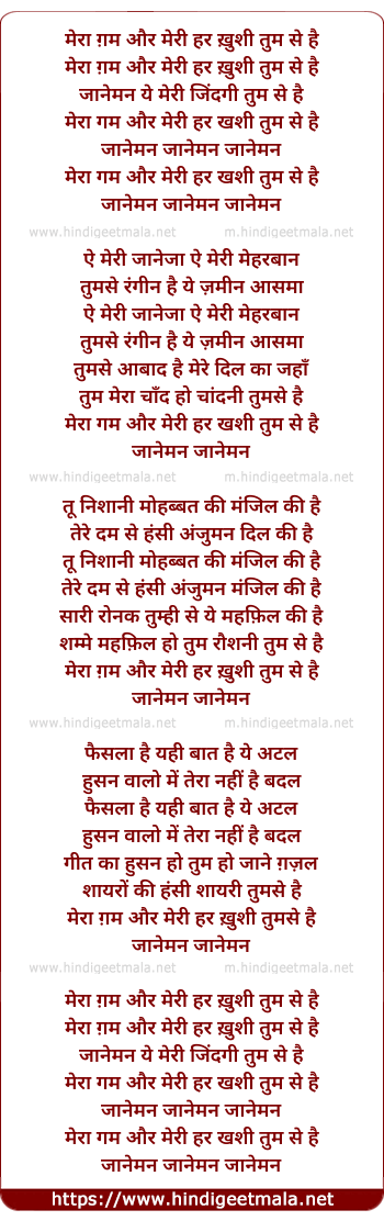 Lyrics of Mera Gham Aur Khushi - मेरा ग़म और ख़ुशी
