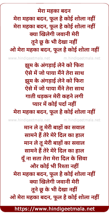 Lyrics of Mera Maheka Badan - मेरा महका बदन