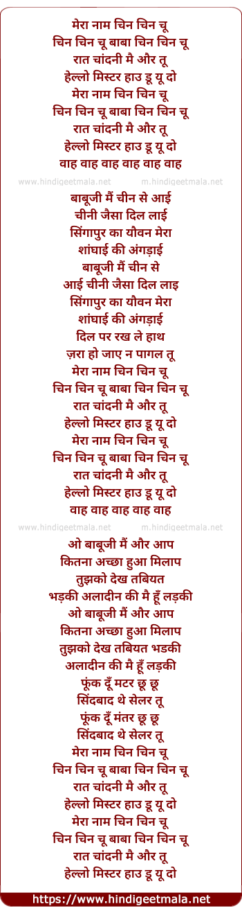 Poetic Translation - Lyrics of Mera Naam Chin Chin Chu