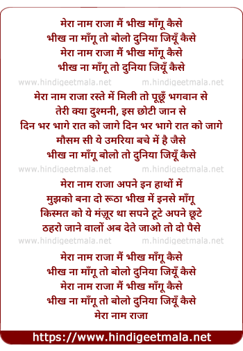 mera naam raja mai beekh mangu kaise