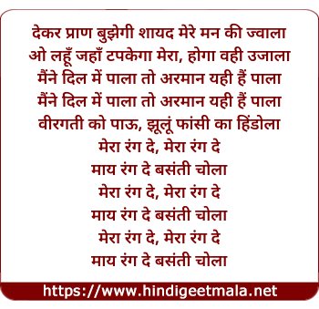 Lyrics of Mera Rang De (Sad) - देकर प्राण बुझेगी शायद मेरे मन की ज्वाला