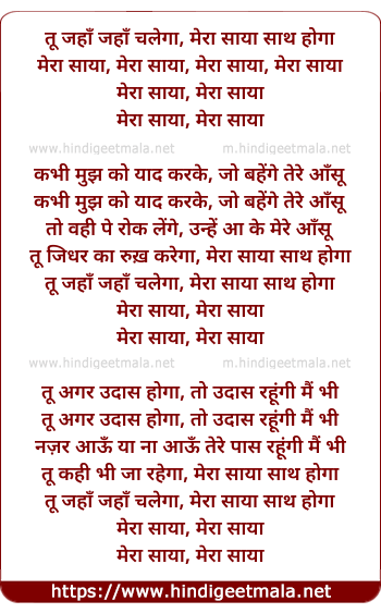 Lyrics of Mera Saaya Sath Hoga (2) - मेरा साया साथ होगा