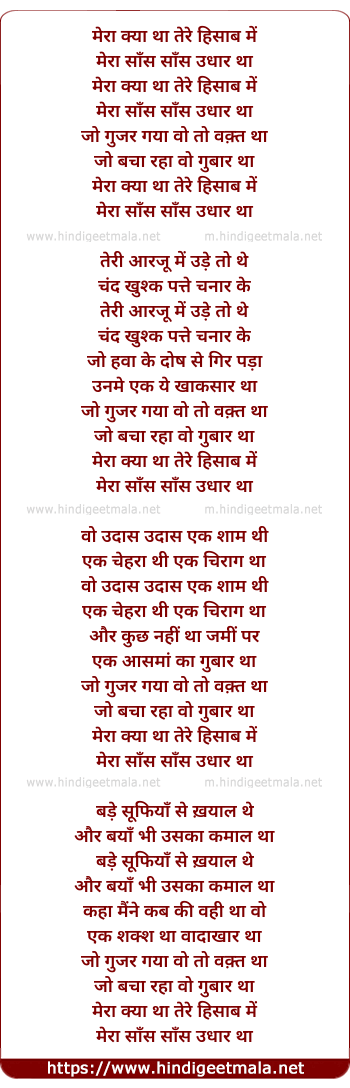 mera kya tha tere hisaab me