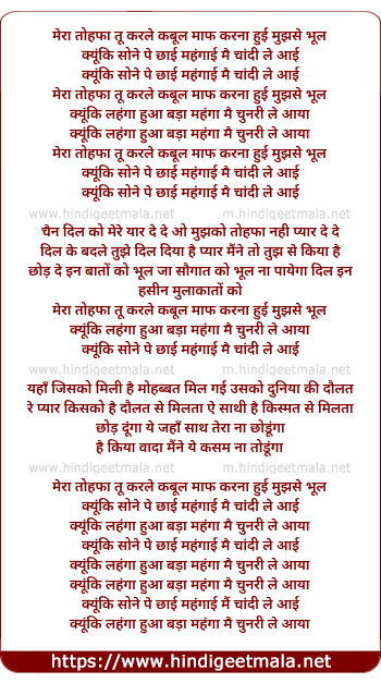 Lyrics of Mera Tohfa Tu Karle Kabul - मेरा तोहफा तू करले कबूल