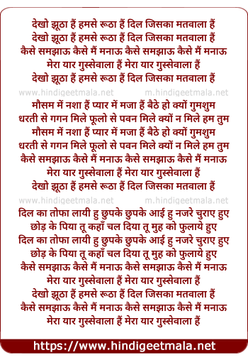 dekho jhootha hain hamase rootha hain dil jisaka matavaala hain