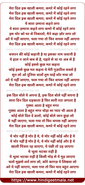 Love the lyrics Mera Dil Ek Khali Kamra Kamre Main Koi Rehne Laga Yeh Saara