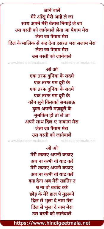 Lyrics of Mere Aansu Meri Aahen - मेरे आँसू मेरी आहे