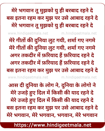 mere bhagwan tu mujhko yu hi barbaad rehne de