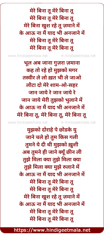 Lyrics of Mere Bina Tu Khush Rahe Zamane Me - मेरे बिना तू खुश रहे ज़माने में