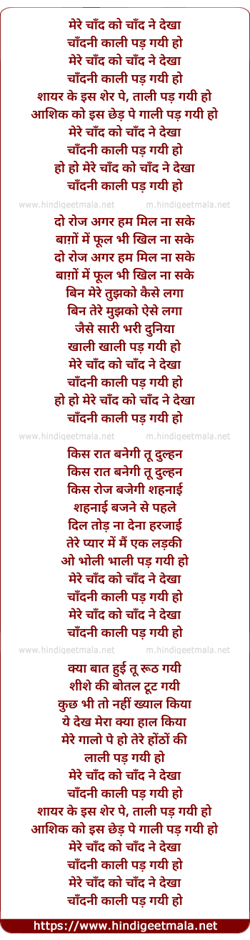 Lyrics of Mere Chand Ko Chand Ne Dekha - मेरे चाँद को चाँद ने देखा