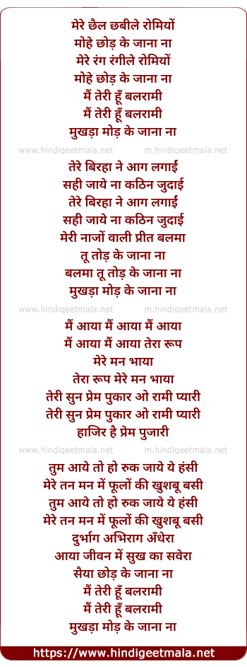 Lyrics of Mere Chhail Chhabile Romeo - मेरे छैल छबीले रोमियों