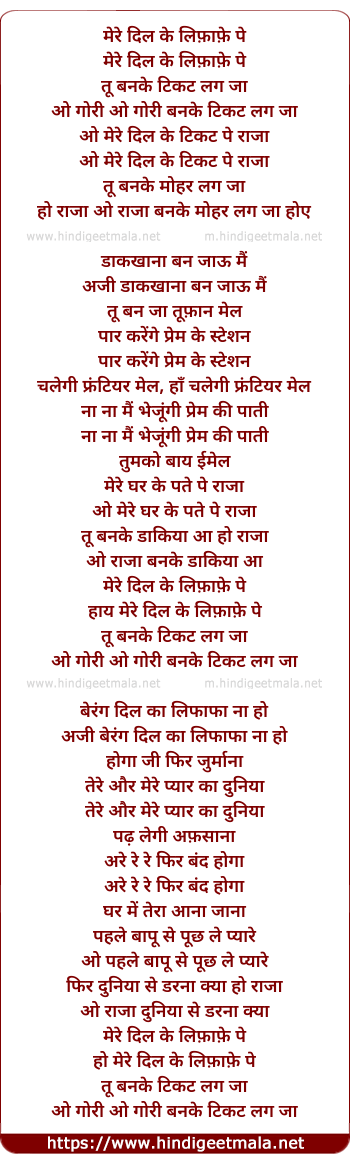 Lyrics of Mere Dil Ke Lifafe Pe - मेरे दिल के लिफ़ाफ़े पे