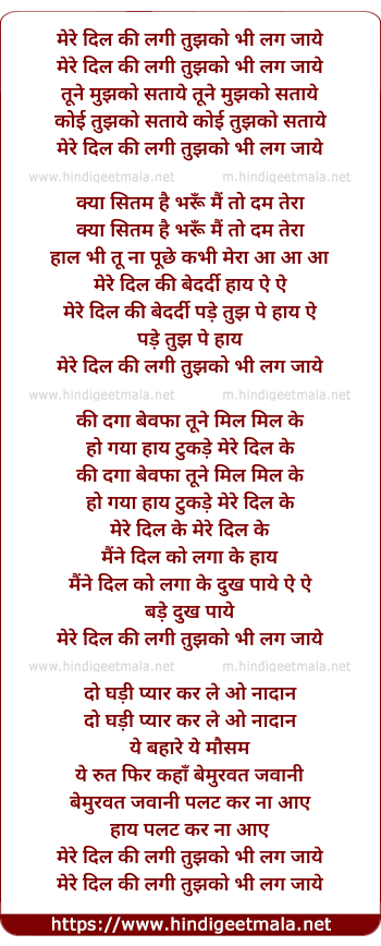 Lyrics of Mere Dil Ki Lagi Tujhko Bhi Lag Jaye - मेरे दिल की लगी तुझको भी लग जाये