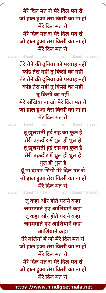 Lyrics of Mere Dil Mat Ro - मेरे दिल मत रो