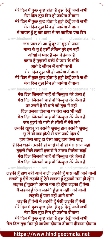 Lyrics of Mere Dil Me Kuch Kuch Hota - मेरे दिल में कुछ कुछ होता