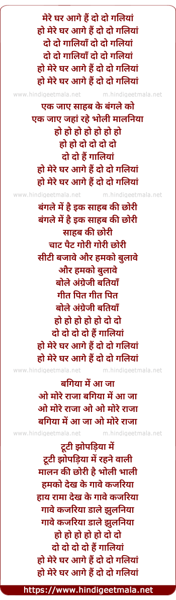 Lyrics of Mere Ghar Aage Hai Do Do Galiya - मेरे घर आगे है दो दो गलियां