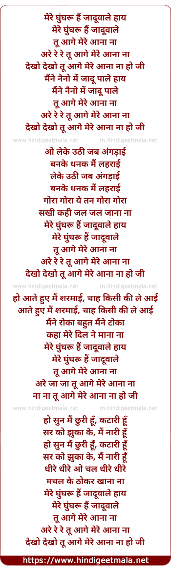 Lyrics of Mere Ghunghru Hai Jaduwale - मेरे घुंघरू हैं जादूवाले